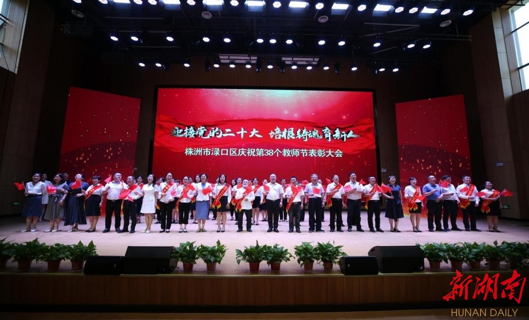 科教新报·新湖南客户端讯(通讯员 肖喜林 张婷)9月9日上午,株洲市渌口区在株洲市二中附属第三(南洲)小学多功能报告厅开展第38个教师节表彰活动。区委书记、渌口经开区党工委第一书记李晓彤,区委副书记、区长赖晓智等区级领导,教师代表、企业代表、家长代表等335人参加活动。