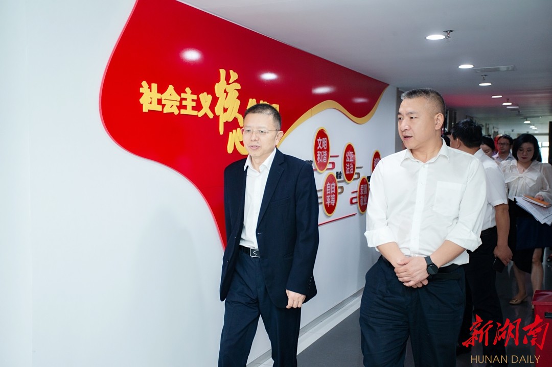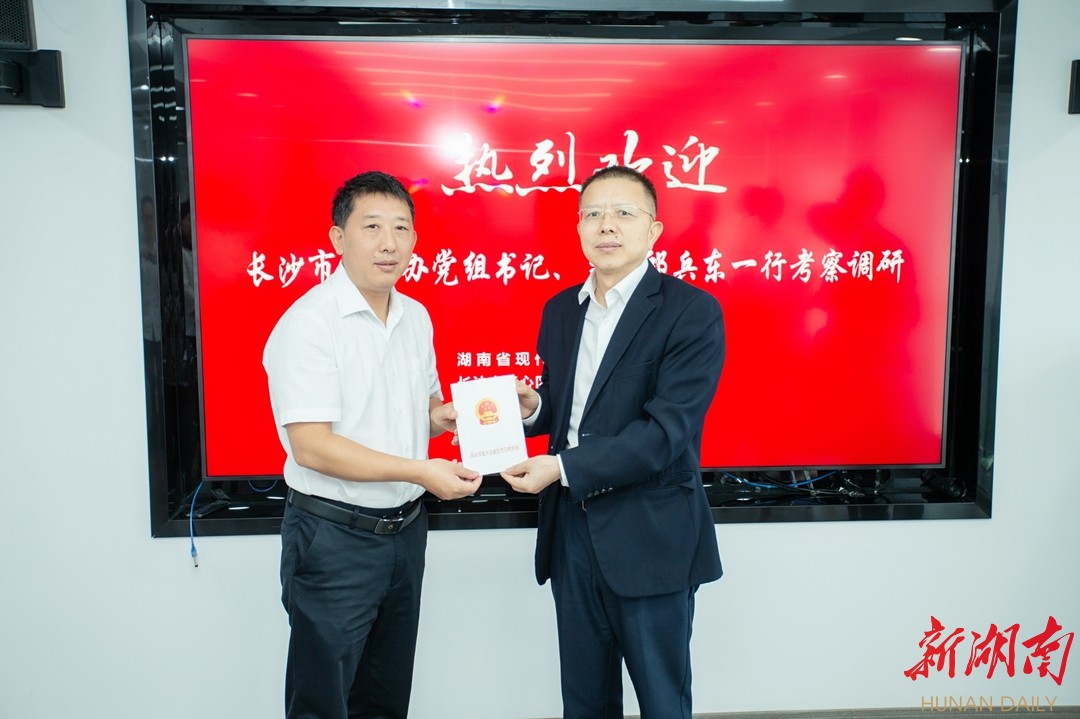 新湖南客户端9月25日讯(通讯员 张磊)9月23日上午,长沙市金融办党组书记、主任邱兵东率市金融办党组成员、副主任胡燕军,地方金融监管处、地方银行保险处、市数字人民币领导小组负责人一行莅临现代投资担保小贷座谈和现场调研。现代投资党委委员、总会计师、现代财富党支部书记、董事长曾永长,现代投资投资发展部部长李长春,现代财富党支部副书记、副董事长姜华,现代担保董事长王明祥及担保小贷班子成员等参加座谈会。座谈会由现代担保董事长王明祥主持。