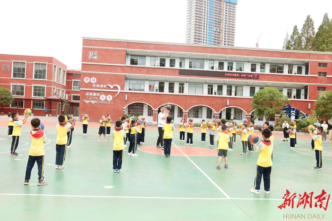 接着,考察团一行观摩了学校体育教研组长江勇老师的篮球示范课。江老师的篮球课融入新课程标准中“教学、勤练、常赛”等教学理念,孩子们兴趣盎然,运动量合理充分,得到大家的一致好评,正如彭院长在点评中所言:这节篮球课通过游戏化的教学设计,通过“以技健体、以文化人”的教学方式,很好地诠释了“以体育人”的理念。