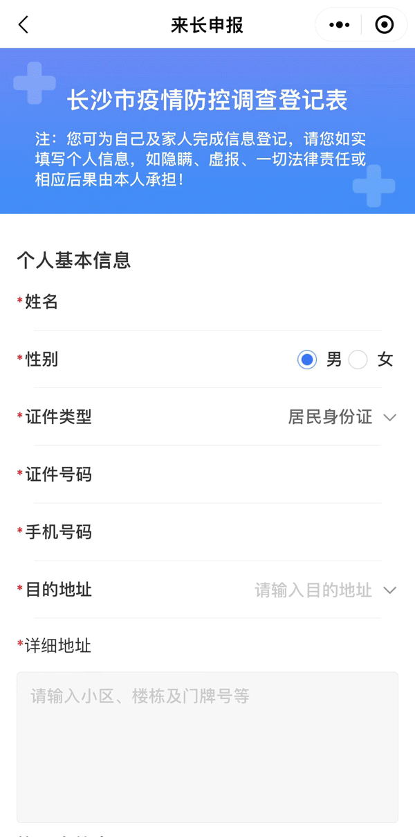 打开“我的长沙app”或搜索“我的长沙小程序”点击“来长申报”
