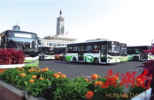 (长沙公交车井然有序,靓丽整洁,焕然一新。 田超 摄)