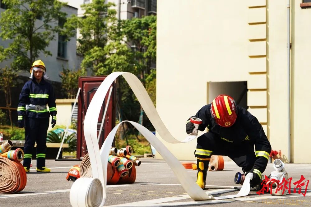 湖南日报·新湖南客户端9月28日讯(记者 欧阳倩 通讯员 唐杰)昨天,长沙市雨花区10支队伍“打擂台”,多种形式展示消防队伍业务技能,并以赛促学,提升消防队伍整体作战能力。