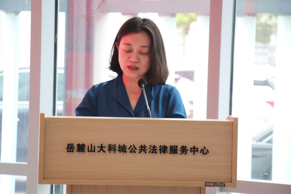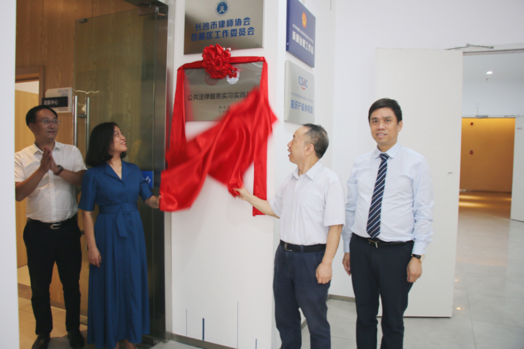 湖南师范大学法学院院长肖北庚和长沙市司法局党组成员、副局长张智分别致辞。长沙市公共法律服务中心与湖南师范大学法学院共同签署了《公共法律服务实习实践基地合作协议》。长沙市司法局党组成员、副局长张智与湖南师范大学法学院院长肖北庚共同为“公共法律服务实习实践基地”揭牌。