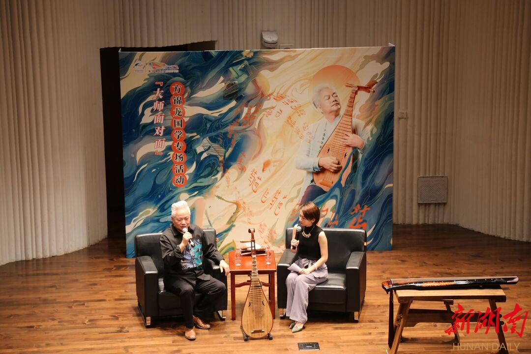 湖南日报·新湖南客户端9月18日讯(记者 熊远帆)今天下午,长沙音乐厅举办了“大师面对面”之方锦龙国学专场活动。现场,国乐艺术家、乐器收藏家、当代五弦琵琶代表人方锦龙为市民们带来了一场精彩纷呈的国乐文化盛宴。