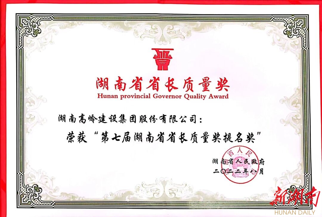 湖南日报·新湖南客户端9月15日讯(通讯员 谭明)9月14日下午,2022年湖南省质量大会在长沙召开,会上发布了第七届省长质量奖,高岭集团荣获提名奖,该集团董事长胡锷参加颁奖大会。