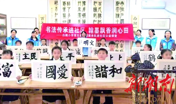 白鹤小学“陪伴你”周末书法课堂。 (株洲市天元区教育局 供图)