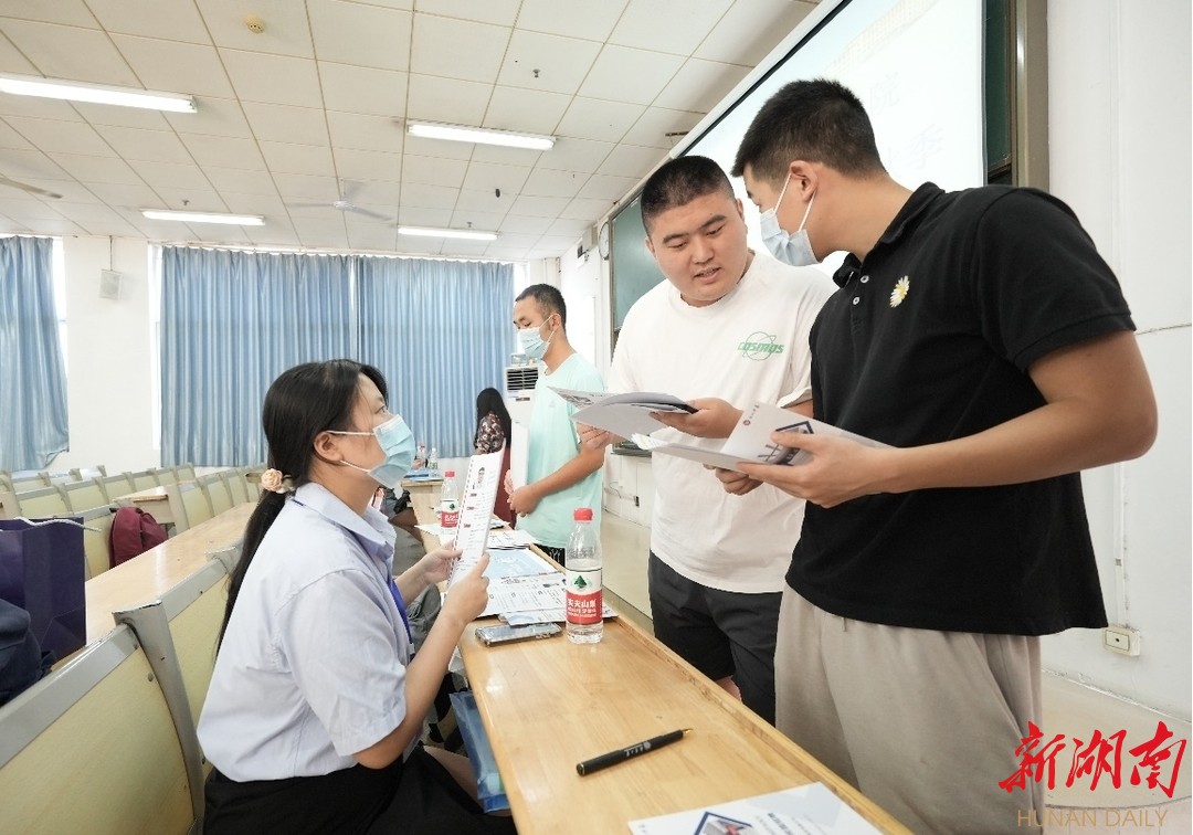在双选会现场,参会毕业生每人拿着一摞打印好的简历,在招聘单位展位前查看信息、了解招聘需求情况。“秋招正是我们毕业生求职就业好时机,本次双选会参会单位质量高,我想看看有没有更好的机会。”来自机械工程学院的吕同学已经在现场投递5份简历,他想在长沙或广州有一份稳定的工作。“本次双选会有许多是我心仪的就业单位,我至少投递了10份简历,有1家单位已经向我发起网签邀约了。”来自经济管理与法学学院的刘同学兴奋地说道。