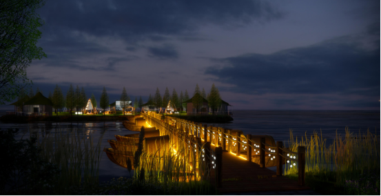 渔歌艺术营地位于柳叶湖旅游度假区南岸,规划面积281亩 ,由岛、湖、池、岸组合成优美景观,可近观万亩柳湖清波,远眺太阳山色。