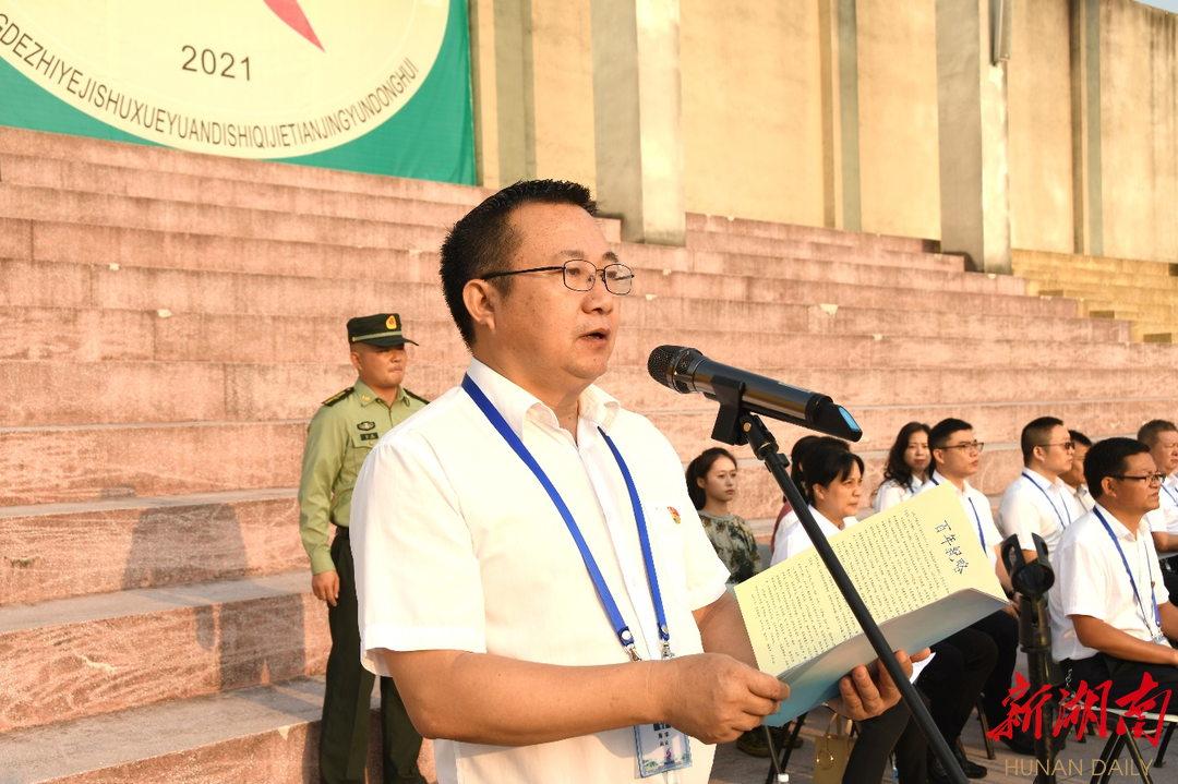 9月17日上午,常德职业技术学院2022级新生开学典礼暨军训动员大会在学院西运动场举行。该学院在家院领导出席大会,各部门、各单位负责人,各系分管学生工作负责人,新生班辅导员,新生军训团教官以及2022级全体新生参加大会。学院党委书记李厚元向军训总教官授旗,党委副书记、院长周华为典礼致辞。