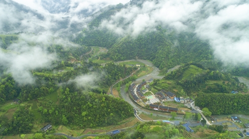 (脱贫后的石门县薛家村,山绿水清。唐亚翔 摄)
