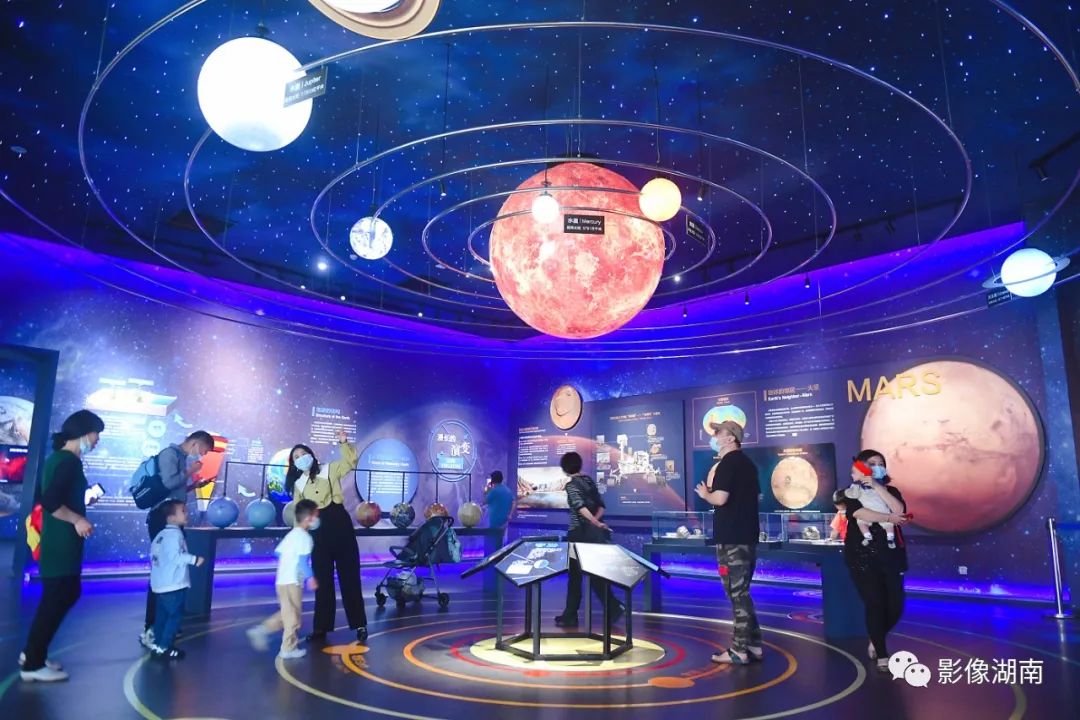 观众在湖南省地质博物馆“蓝色星球“唯一家园——地球奥秘展厅”参观。谢睿楠 摄