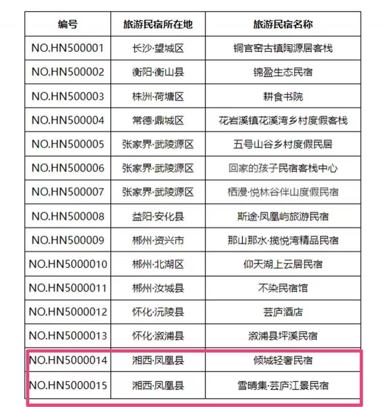 凤凰县2家民宿被确定为湖南省五星级旅游民宿