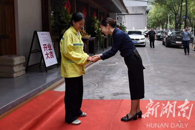 湖南日报·新湖南客户端9月15日讯 (记者 宁奎 向韬 通讯员 田贵学)“三年的疫情,三年的煎熬,多少次的等待、多少回的期盼,今天我们再度扬帆启航。这是政府的支持让我们提振了投资的信心,这是旅发大会带给我们千载难逢的大好机遇。”9月14日上午10点38分,在秦大妈老字号店重装开业的典礼上,秦大妈餐饮管理有限公司董事长宋金绒深情发言。仪式上,她特意邀请了为市容市貌常年殷勤付出的环卫工人,共同剪彩。