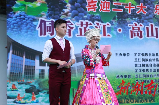 在第五个中国农民丰收节即将到来之际,当天,秉承“庆祝丰收、弘扬文化”的宗旨,以“喜迎二十大 乐享丰收节” 为主题的侗香芷江·高山葡萄开园仪式在这里开幕。