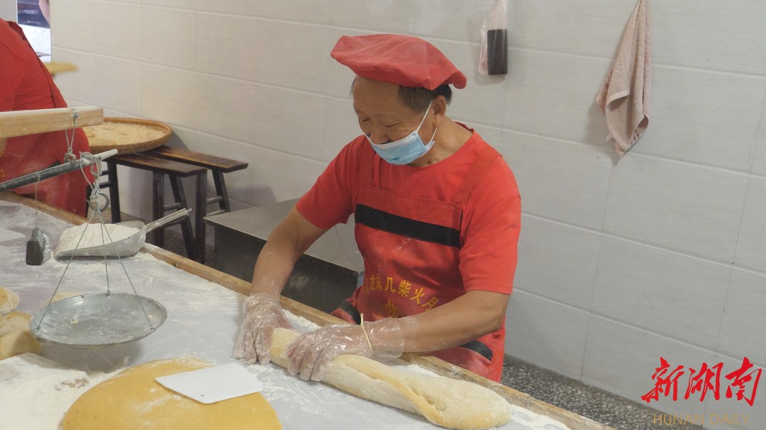 “以前我在部队的炊事班就经常揉面,退役后我选择跟镇上的师傅做月饼和糖点,一做就做了几十年。”周绍坤回忆道。