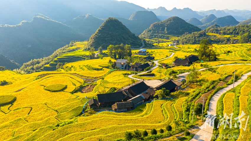 丰收的塘家梯田,遍地金黄。严洁 摄