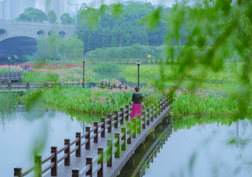行走在环湖路上,一步一景相映成趣;沿着湖边栈道漫步而行,碧水微波荡漾、涟漪朵朵;坐在休憩亭,静听鸟鸣婵婵,风穿林语。在松雅湖国家湿地公园,翠绿的林木与浩渺的湖面相伴,舒适的环湖路和耳边的鸟语声随行,人文与自然相融相契绘成了一幅惬意舒适的画卷。