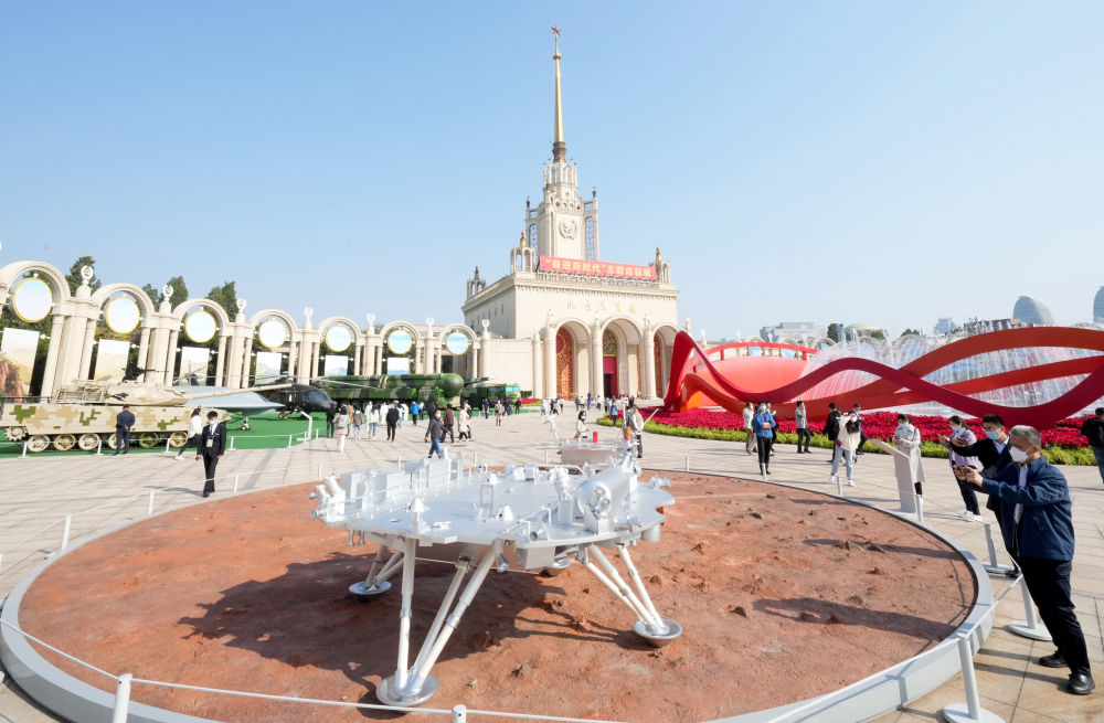 10月7日,观众在“奋进新时代”主题成就展上参观天问一号着陆器模型。新华社记者 王毓国 摄