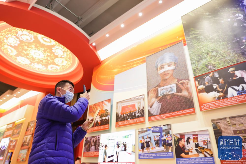 展览上,一张张图片生动诠释党的创新理论“飞入寻常百姓家”——