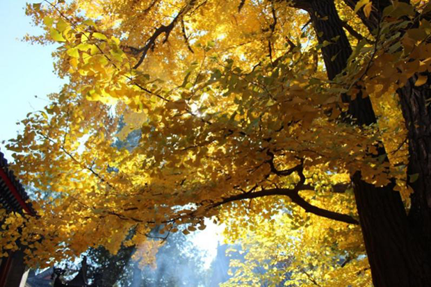 黄色叶树种。高大乔木,银杏叶子呈扇形,在种子植物中很特别。观赏价值极高,常被用作园林植物及行道树植物。
