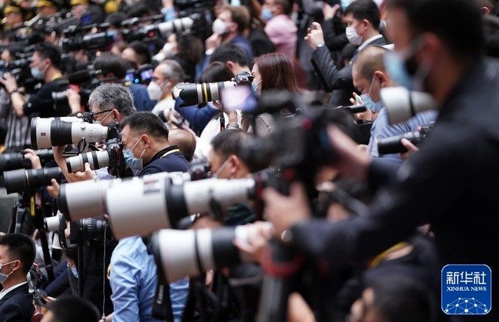 10月16日,中国共产党第二十次全国代表大会在北京人民大会堂隆重开幕。这是记者在采访。新华社记者 陈晔华 摄
