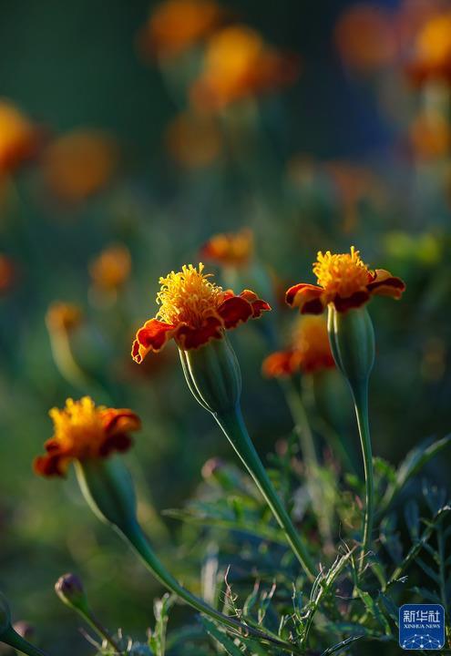 这是10月15日在贵州省黔东南苗族侗族自治州丹寨县兴仁镇拍摄的万寿菊。新华社发(黄晓海 摄)