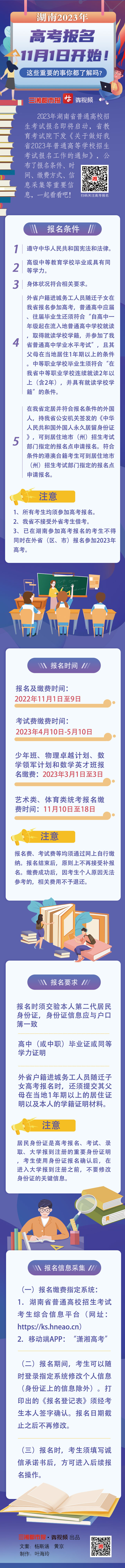 报名持续9天,缴费需在网上进行……10月24日,《关于做好我省2023年普通高等学校招生考试报名工作的通知》(下称《通知》)下发。《通知》指出,2023年湖南高考将于11月1日—9日报名。