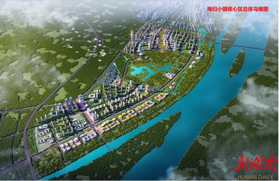 2022年9月12日,海归小镇举办揭牌仪式,标志其驶入发展快车道。目前已落地展示中心、长沙市第四医院(滨水新城医院)、湖南工商大学、中交华中总部、康佳华中总部、湘江涂料总部、润和总部等重点项目,正在加快建设研发中心、湘江学校、国际社区等项目。