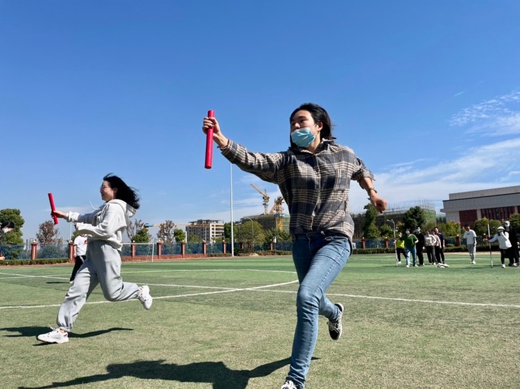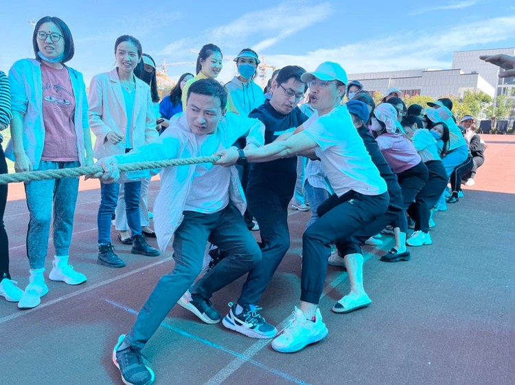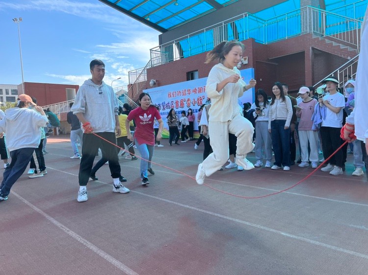 在迎面接力跑项目中,老师们奋力向对面跑去,交接处选手们全神贯注,目光锁定接力棒,快速地完成传棒。赛场两旁的加油呐喊声此起彼伏。跳长绳项目中,老师们身轻如燕,轻轻一跃,轻松跳过。拔河比赛中,当比赛的哨声响起,参赛老师们鼓足了劲,紧握长绳,全力以赴,努力争夺比赛胜利。