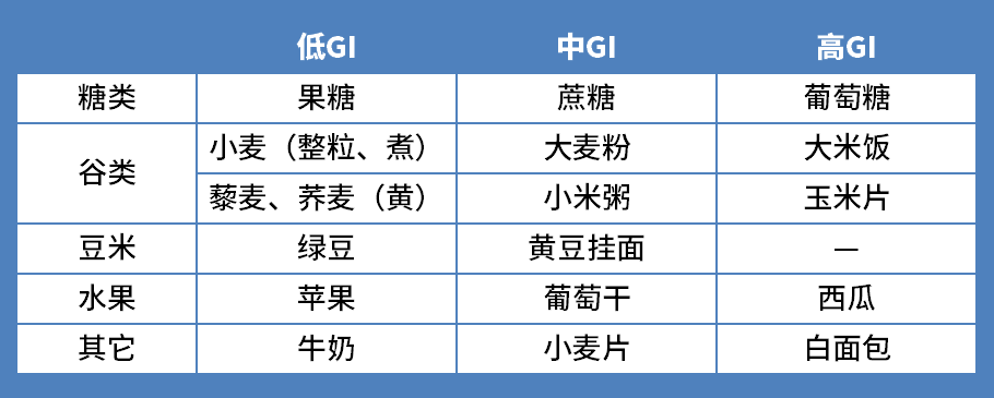 世界卫生组织和联合国粮农组织就建议,应“参照食物GI值表,合理选择食物”,其中常见的食物GI值如下表: