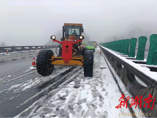 今年年初,低温雨雪冰冻天气袭击三湘大地,长韶娄公司以雪为令,迅速行动,对全线路面、桥梁、匝道等易结冰路段多轮次撒布融雪剂、徒手清障,保障车辆的畅安通行。