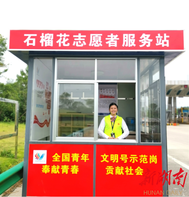 2016年,“石榴花”党建品牌在花明楼收费站试点,石榴花般热情的服务为司乘送上了最美好的出行体验。如今,“石榴花”开全线,石榴花志愿服务站已成为长韶娄高速最靓丽的一抹红。