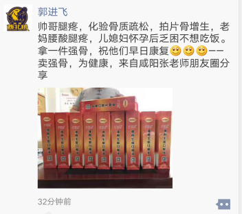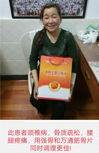 今晚电话回访,患者说力气大点了,疼痛减轻,感觉心里有劲了,最主要的是告别了吃药困难,口服液方便好喝,吸收好,不难吃,气血钙铁同补。老人的面貌比起之前没有吃强骨生血口服液好了很多,脸上的老年斑都淡化了很多,头花也由白转黑了很多。
