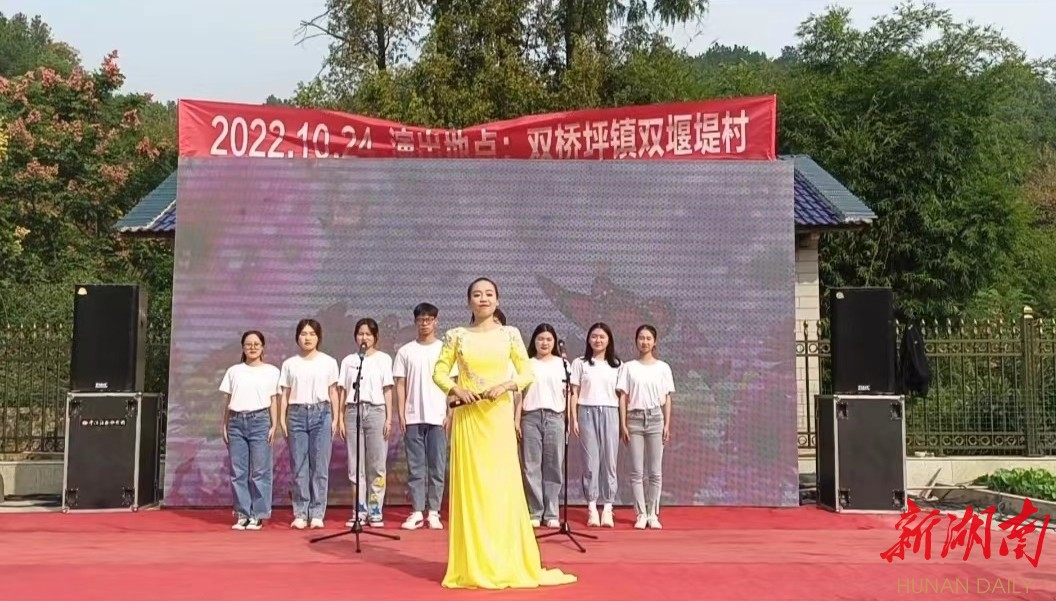 常德市海燕歌舞团文艺轻骑队与湖南应用技术学院大学生们,同台演唱了《走进新时代》。该校文化产业管理专业学生李木子说:“会积极投身到乡村基层工作中,为建设美好和谐的社会贡献自己的力量。”