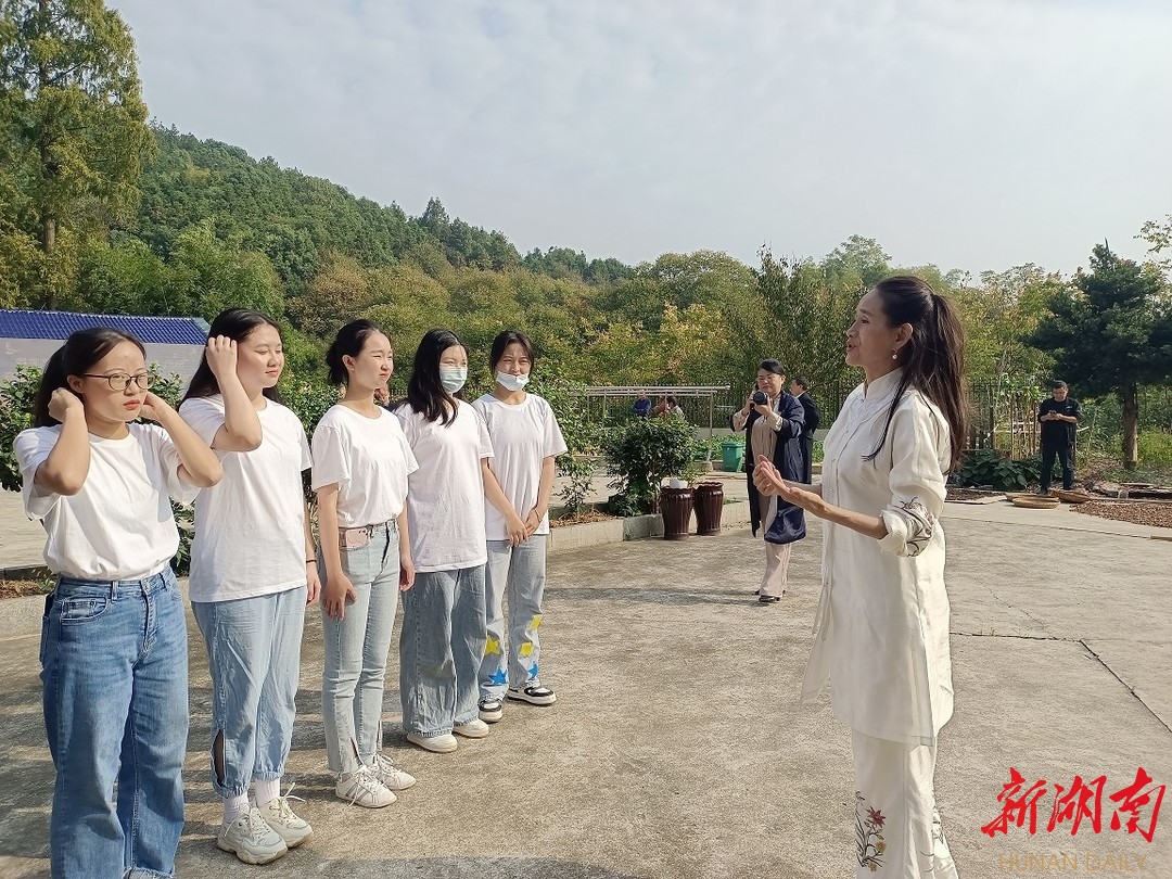 与会人员热烈地讨论起关于挖掘红色文旅资源的话题。国家级非物质文化遗产常德花鼓戏传承人、第十三届全国人大代表杜美霜老师按捺不住激动的心情,当场教授大学生戏曲台步和云手的技艺,以实际行动表明了对文化传承的决心
