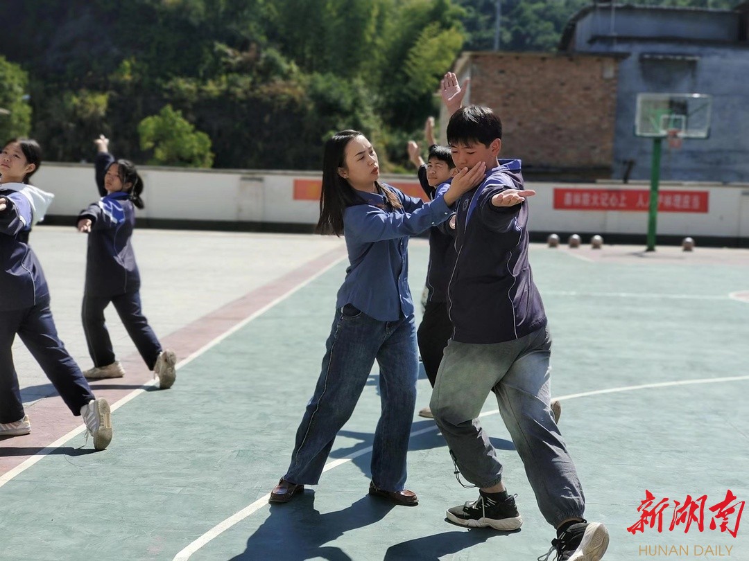 “双减”政策落地后,岩前中学丰富了体育、音乐等美育课程。清晨、黄昏,经常有学生拉着汤丽萍指导基本功、探讨舞蹈动作。每天的大课间活动时间,全校学子意气风发地同跳《一起向未来》,音乐声、欢笑声回荡在大山之间……