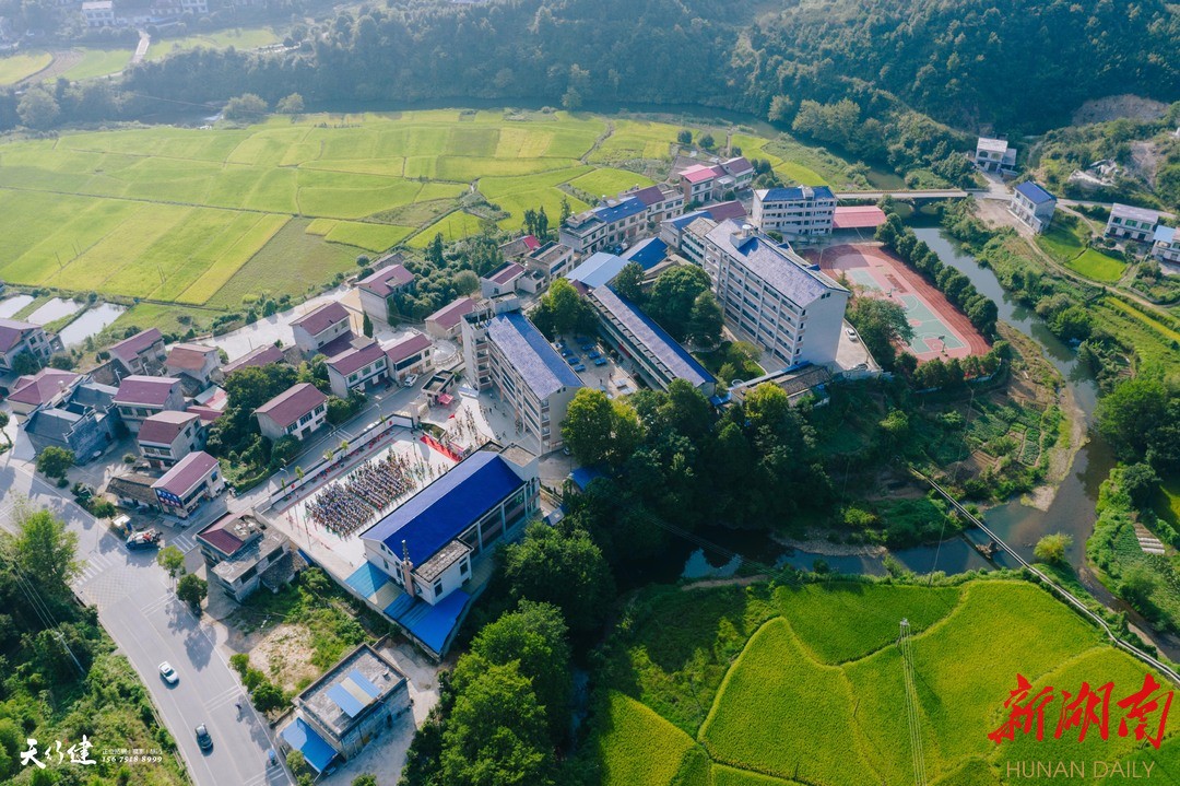 罗霄山脉北麓的湘赣两省边界,连绵起伏的群山环绕着文家市镇。1927年,毛泽东在湘赣边发动秋收起义,随后在文家市会师转兵。岩前中学就坐落于这方红色热土,距离江西省万载县黄茅镇仅3公里。
