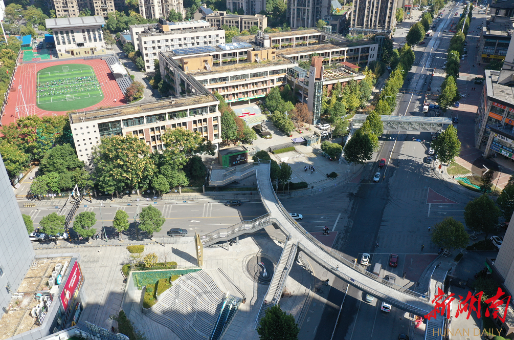 “这条路段居民多、人口密,尤其在学生上下学时段,人流量和车流量都很大,人车混行不仅加剧了交通拥堵,还存在很大安全隐患。”家住附近的赵生龙告诉记者,他的女儿是岳麓区实验小学一年级新生,以前过马路总是提心吊胆,如今过街天桥建成实现了人车分流,孩子上学放学的交通安全有保障,家里人省心多了。