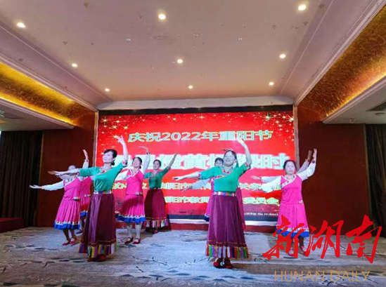 在龚家桥社区,教师新村小区的退休教师们也组织起来,举办重阳庆祝晚会,歌舞表演、健身操展示、个人才艺表演等丰富多彩的节目让老年朋友目不暇接。