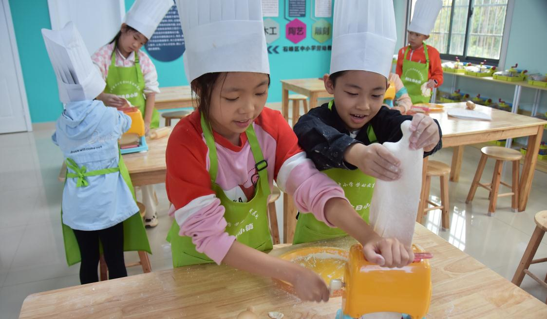 香喷喷的农家饭后,下午的手工劳动活动开启。“古法造纸”学习用纸浆、纱网进行造纸,过程虽然简单,但是同样考验动手能力、创造力和审美能力,薄薄地铺上一层纸浆,大自然拾来的树叶、花草点缀其中,每一幅作品都独一无二。面条制作更是要求认真按教官的指引进行,一个环节稍微马虎一点,就有可能导致最后出不来面条。活动最后让孩子们亲手体验了一把传统棉花糖的制作过程,咬一口自己亲手做的白花花绵软软的棉花糖,劳动一天的疲劳感都消融殆尽。“今天制作面条失败,是有一个步骤忘记做了。”“原来种白菜比我想象的难多了。”返程的车上,孩子们七嘴八舌地聊着今天的收获。
