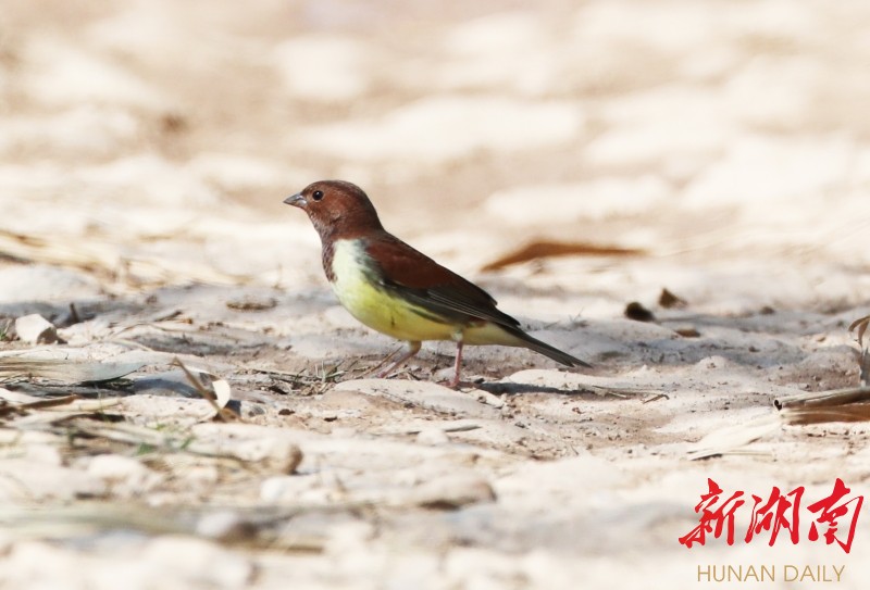 湖南日报·新湖南客户端10月13日讯(通讯员 李剑志)10月11日,沅江市环保志愿者在南洞庭湖的蒸钵湖进行鸟类监测时,发现大寨堤一边的芦苇丛中突然飞出一只小鸟,头栗红色,似乎以前在洞庭湖没有见过,便赶紧跟踪拍摄。经仔细辨认,确定为洞庭湖极为罕见的过境鸟——栗鹀。