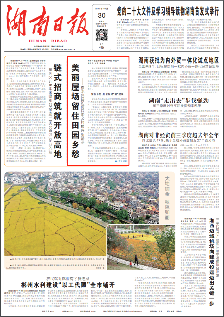 “我们把‘美丽屋场’示范建设作为今年乡村振兴工作主要抓手,全力打造可复制、可推广的‘永兴模式’。”刘朝晖表示,该县聚焦“特”字下功夫,围绕“精”字做文章,以实现“生态美、人居美、产业美、风尚美、文化美”为创建目标,加快实现“农村有景可看,农业有钱可赚,农民有活可干”的农村幸福景象。