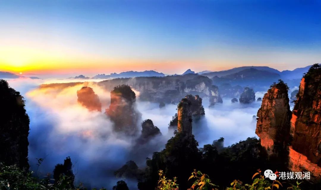 不上黄石寨,枉到张家界。黄石寨视野开阔,四周悬崖绝壁,奇峰怪石林立,被称为“放大的盆景,缩小的仙境”。