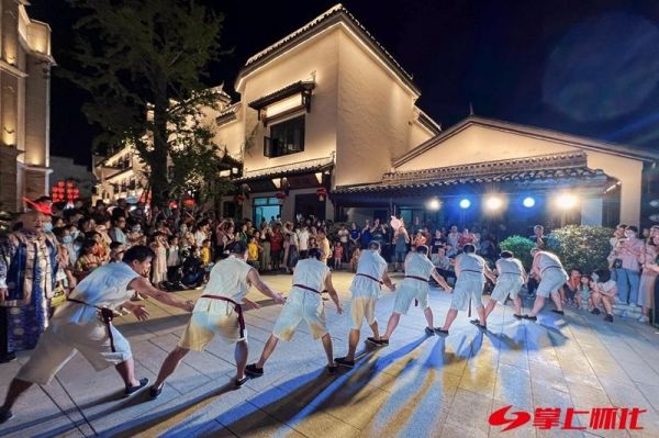 10月2日,夜幕下的洪江古商城流光溢彩,游客们聆听着“天下商道”可歌可泣的动人故事。(陈青 摄)