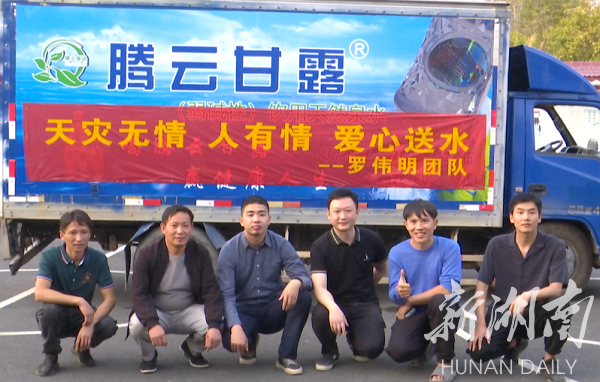 近日,永州罗伟明食品有限公司总经理罗伟明来到旱情最严重的花桥街镇,先后为秀井头村、灯塘村和良木塘村各送去100桶饮用桶装水,让受旱情严重的老百姓就近缓解饮水问题。谈及送水初心,罗伟明告诉记者:“我是冷水滩本地人,2019年的时候返乡创业,我热爱我的家乡。在这个久逢干旱的情况下,我愿意尽自己的一点绵薄之力,来给乡亲们送一点水喝。”
