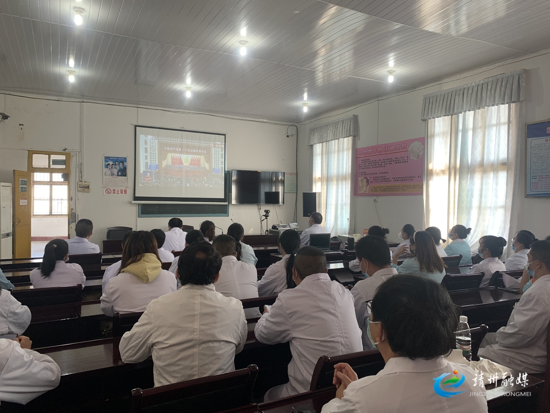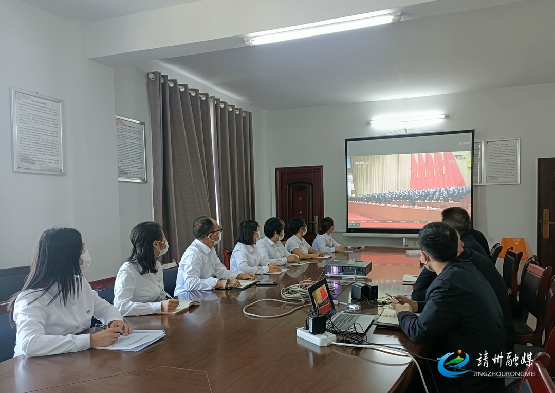 10月16日上午10时,靖州县中医医院全体党员及行政人员集中收看党的二十大开幕会直播。