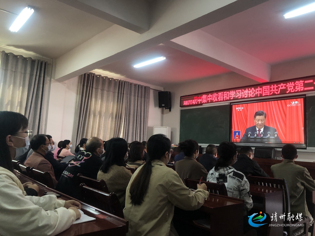 10月16日,靖州一中全体教职工集中收看中国共产党第二十次全国代表大会开幕会现场直播。
