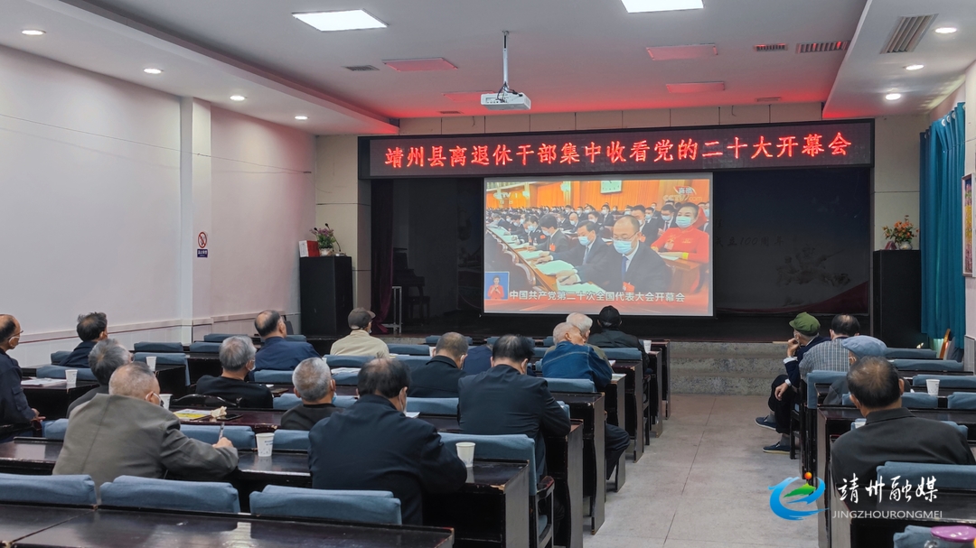 10月16日上午10点,靖州县30多名离退休干部集中收听收看党的二十大开幕会。