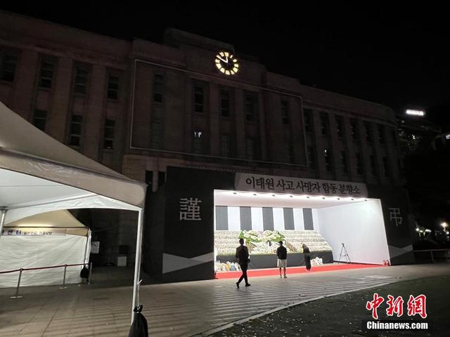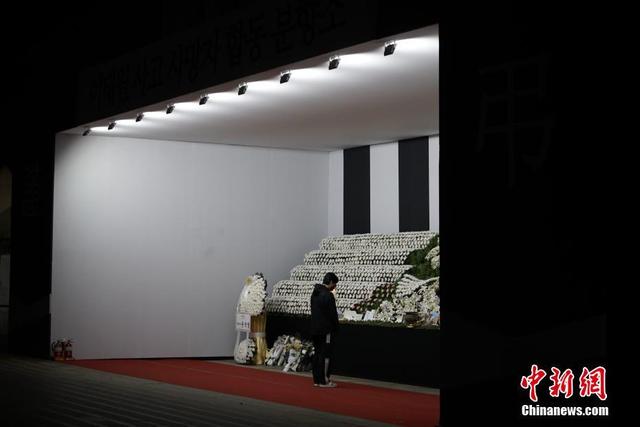 当地时间11月1日23时45分许,韩国民众在位于首尔广场的集体焚香所悼念梨泰院踩踏事故遇难者。 中新社记者 刘旭 摄