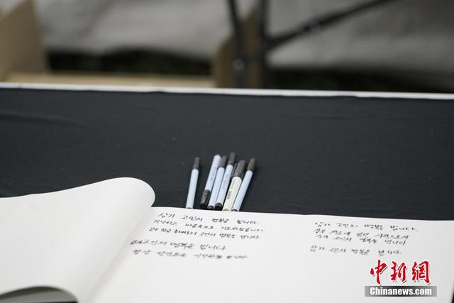 当地时间11月1日23时45分许,韩国民众在位于首尔广场的集体焚香所悼念梨泰院踩踏事故遇难者。图为悼念簿留言。 中新社记者 刘旭 摄